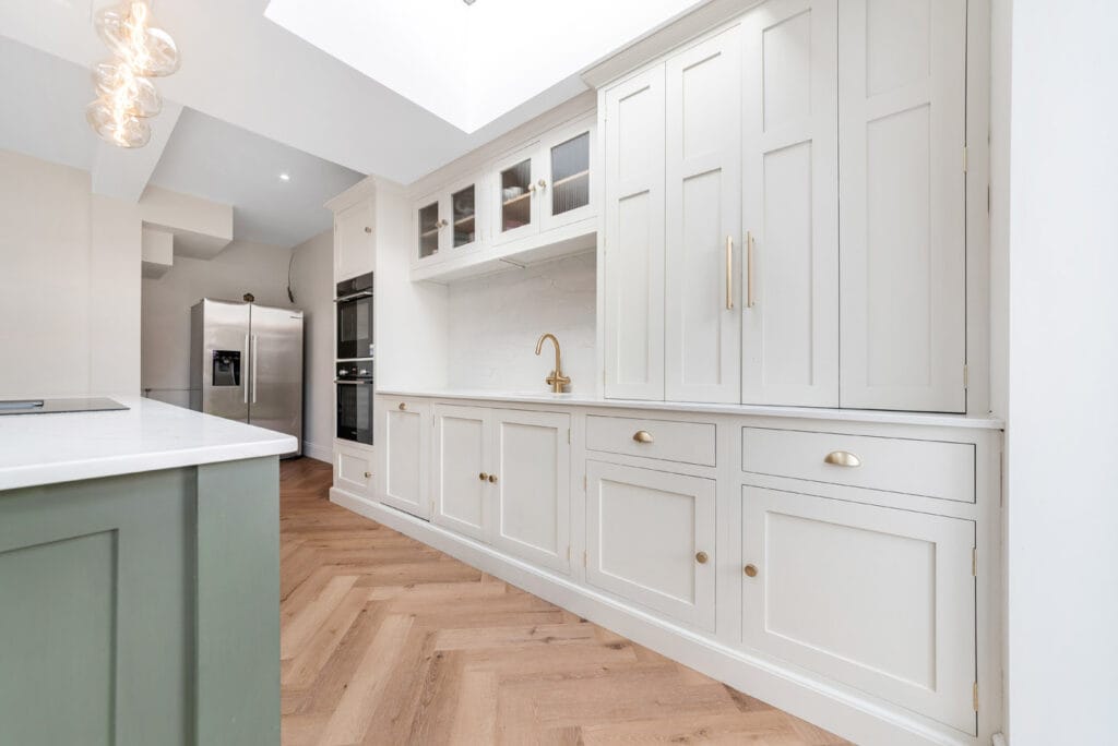 One of the major advantages of a wraparound extension is the ability to completely reconfigure the ground floor. Walls can be opened up to create generous open-plan living spaces, with natural light flowing in from multiple angles. Glazed doors, skylights, and bespoke finishes can be tailored to your taste — whether that’s clean and modern or more classically inspired.