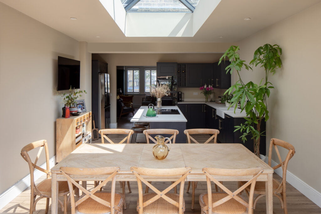 Single dormer loft conversion and rear extension creating a large kitchen and dining area