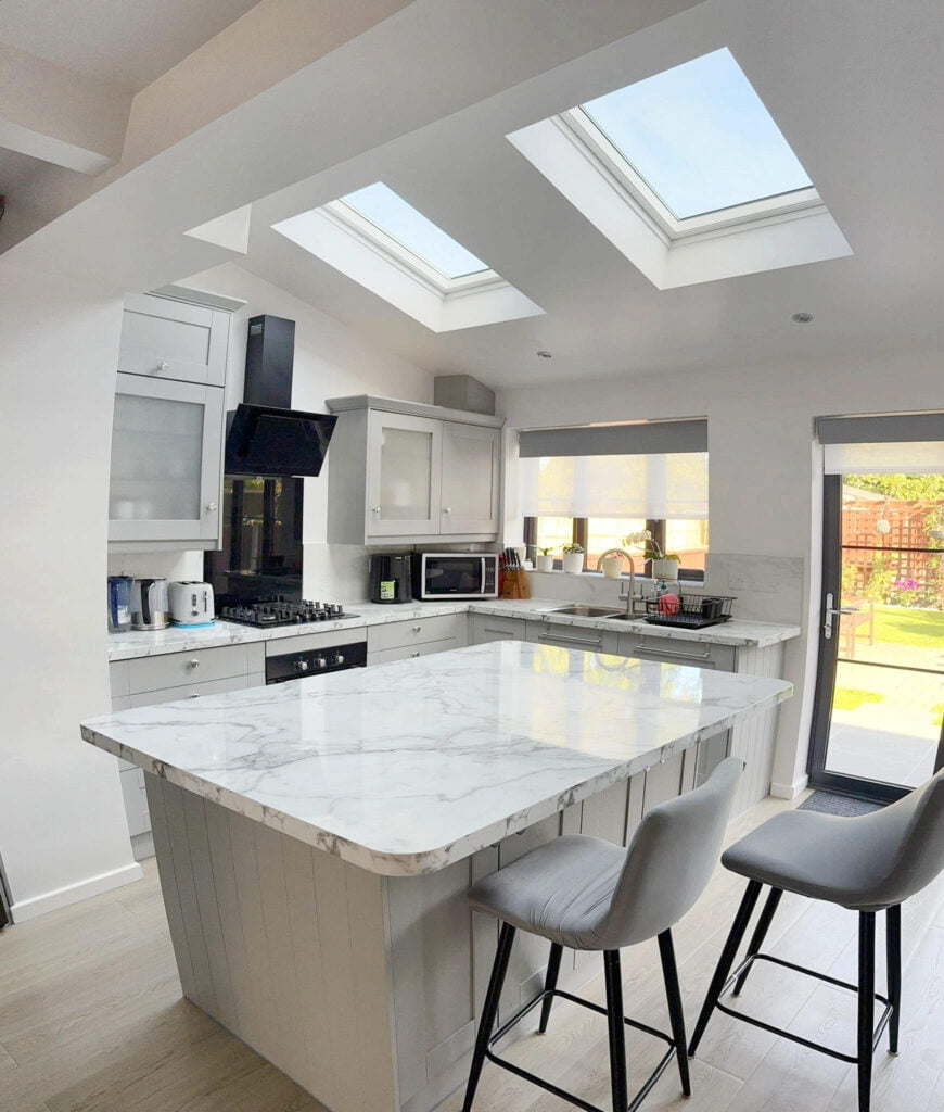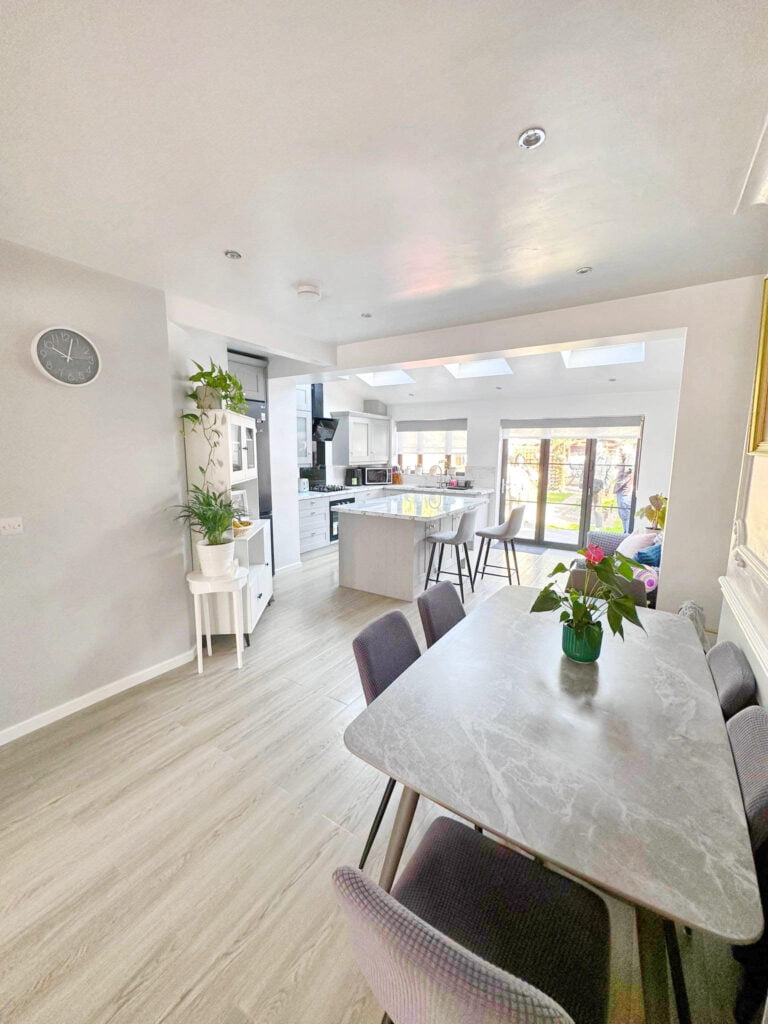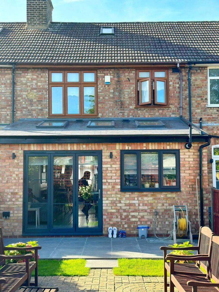 Completed a single storey rear kitchen extension to an end of terrace house, creating an open plan shell kitchen diner space with a WC and utility space, in East London.